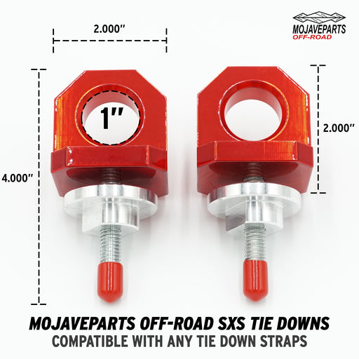 SXS TIE-DOWN RED (PAIR)MOJAVEPARTS OFFROADOriginal price $59.95 - Original price $59.95Original price$59.95$59.95 - $59.95Current price $59.95| /In stockMOJAVEPARTS OFF-ROAD SXS TIE-DOWN RED (PAIR) STRONGER SXS tie-downs for CANAM Maverick X3 and Polaris RZR, has a solid, strong design, that assis... View full detailsOriginal price $59.95 - Original price $59.95Original price$59.95$59.95 - $59.95Current price $59.95| /